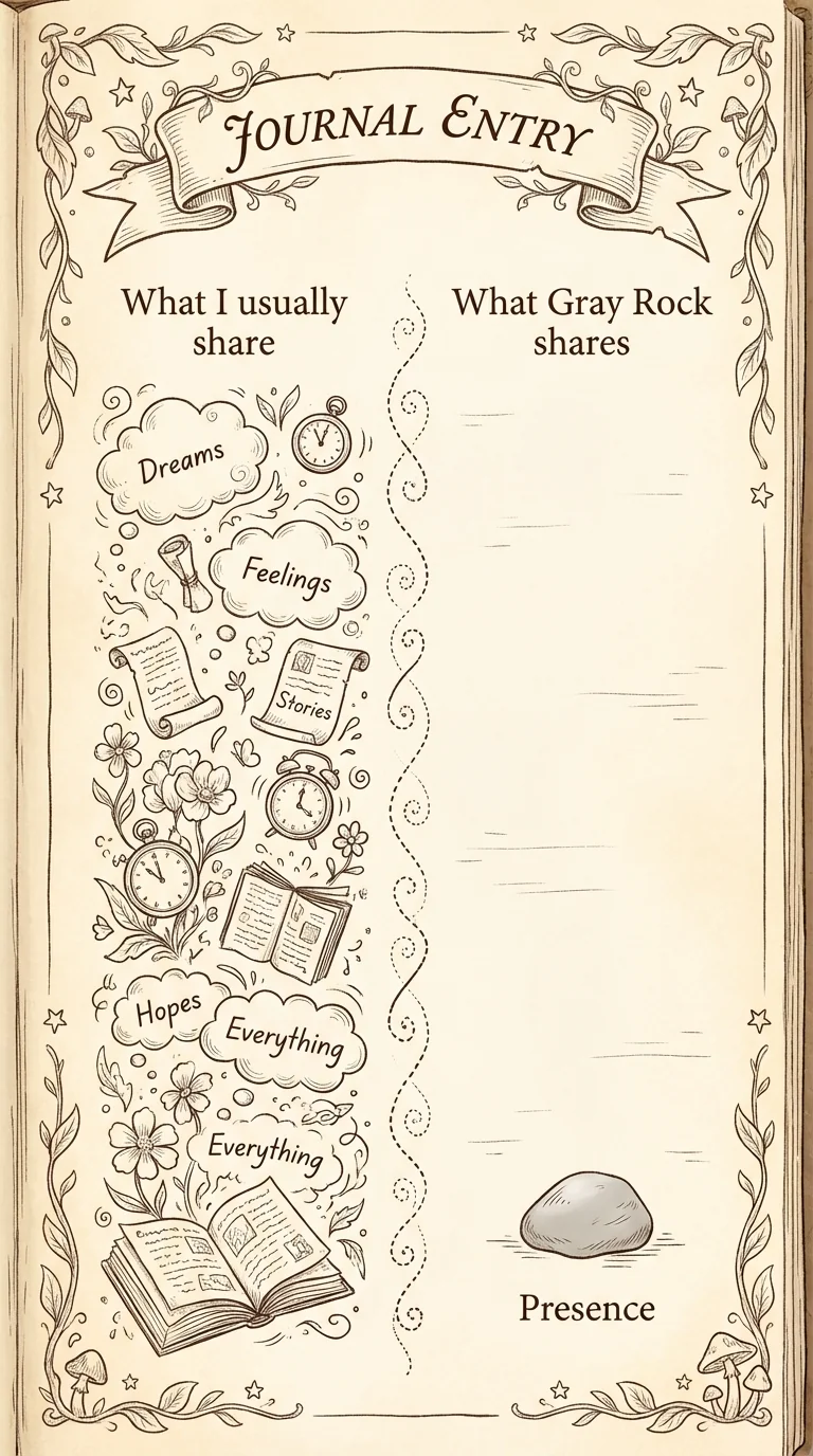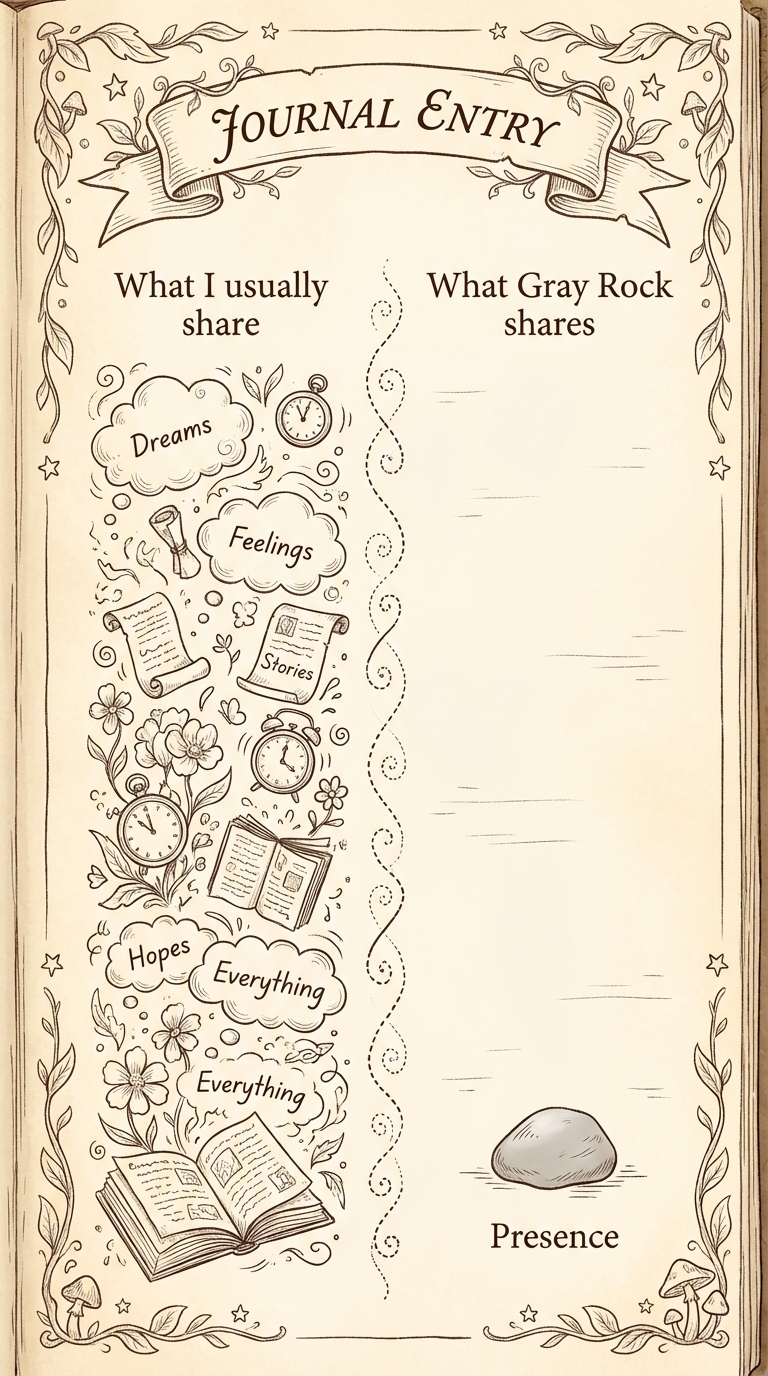 After using Gray Rock, do an inner check-in. Protecting your exterior doesn't mean ignoring your interior. Feel your feelings safely.