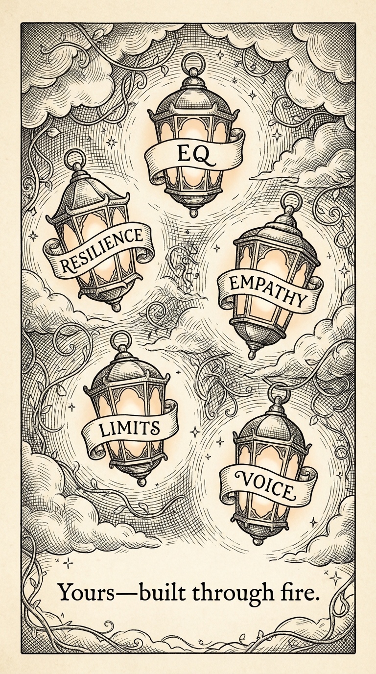 Something real has been forged in this hardship. Emotional intelligence, resilience, empathy, boundaries — skills that will serve you for life.